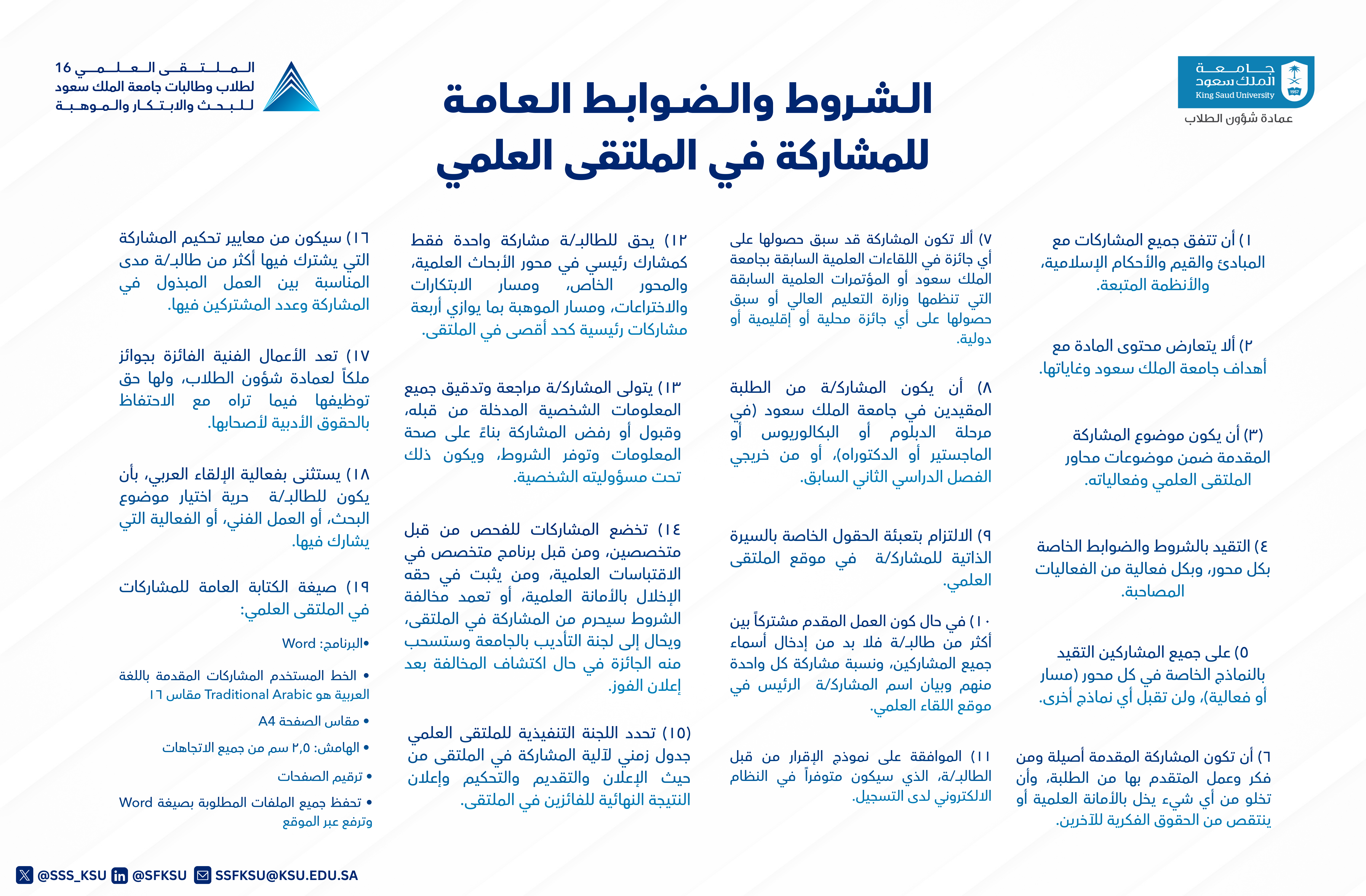 الملتقى العلمي السادس عشر لطلاب وطالبات جامعة الملك سعود للبحث والابتكار والموهبة