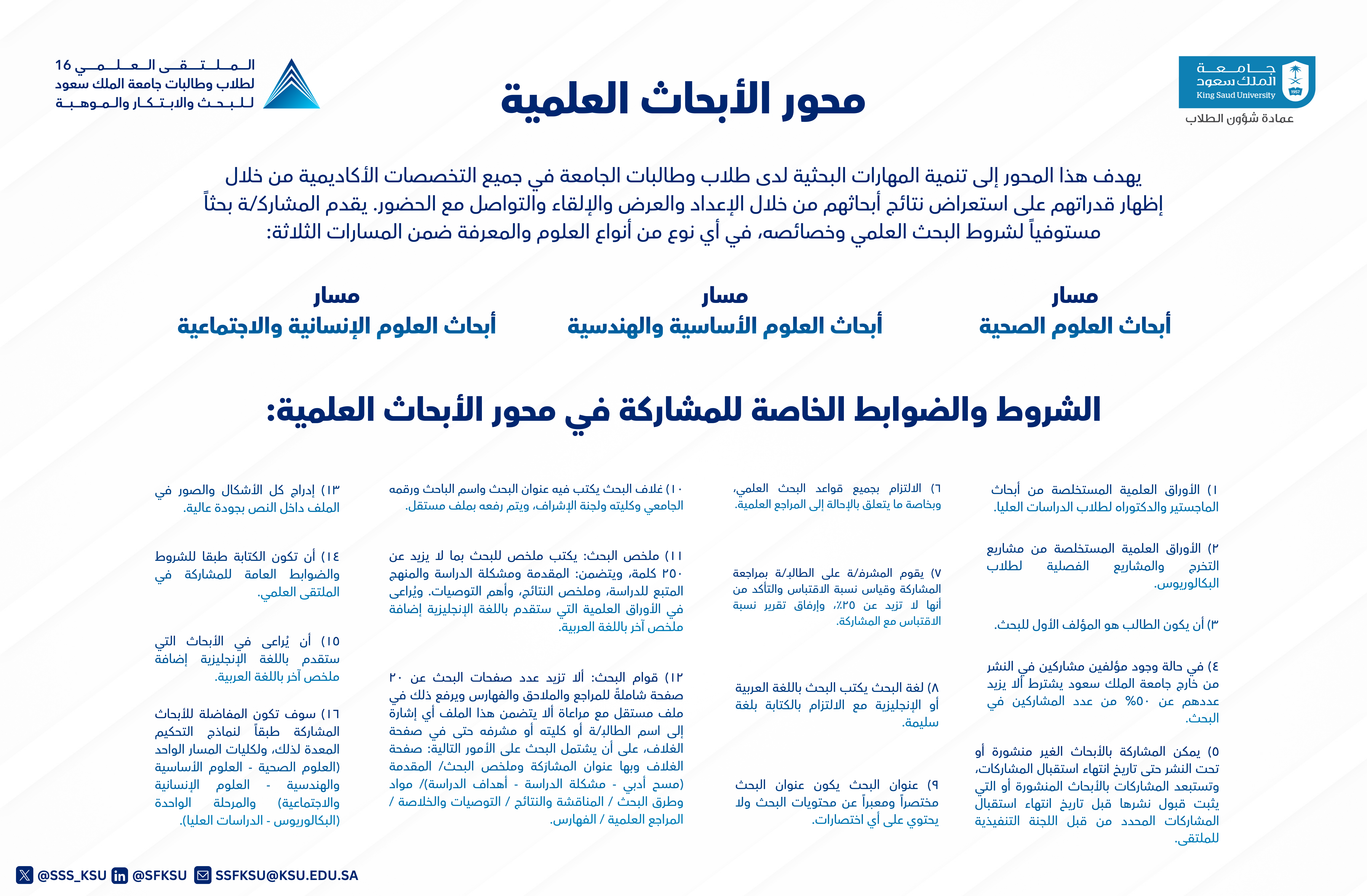 محور الأبحاث العلمية رابط التسجيل في الملتقى العلمي 16 لطلاب وطالبات جامعة الملك سعود للبحث والابتكار والموهبة