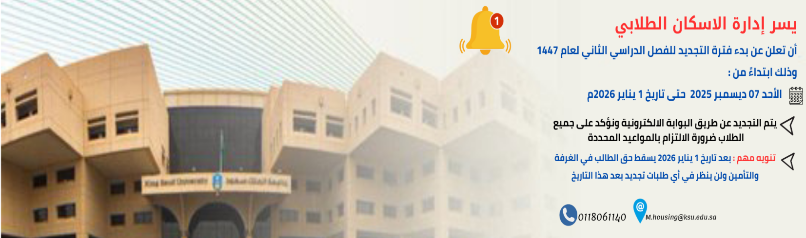 توفر إدارة الإسكان الطلابي مشرفين متخصصين على مدار 24 ساعة .