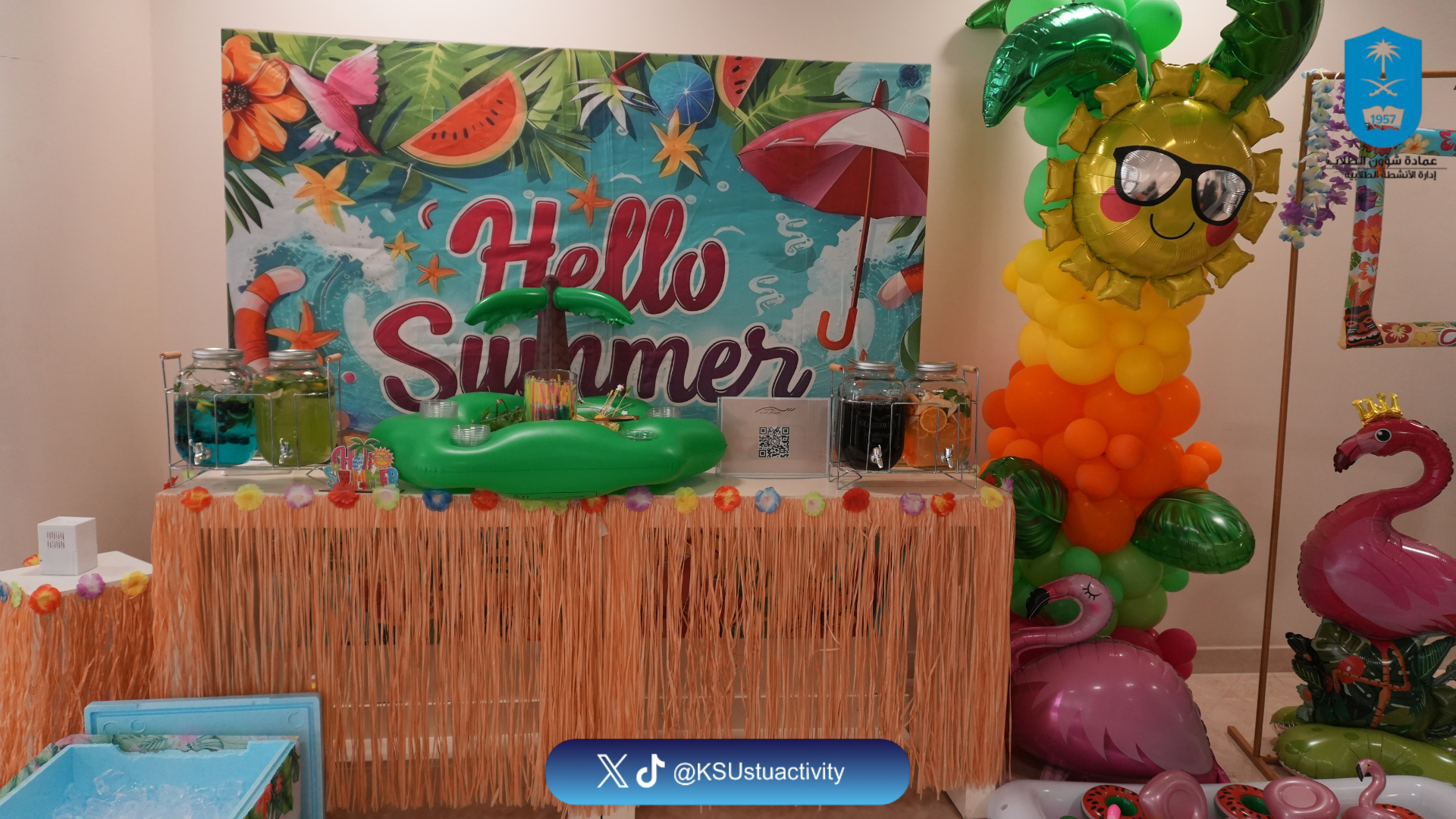 برعاية سعادة وكيلة عمادة شؤون الطلاب لشؤون الطالبات، أقامت عمادة شؤون الطلاب ممثلةً بإدارة الأنشطة الطلابية فعالية Summer Vibes، وذلك في صالة الفنون بمبنى (B27) بالمدينة الجامعية للطالبات، وسط أجواء صيفية مميزة تنوعت فيها الأركان بين مشروبات منعشة وآيسكريم وقهوة بنكهات متعددة، وتوزيعات للحضور، في إطار جهود إدارة الأنشطة الطلابية المستمرة في تفعيل البرامج الطلابية وإثراء البيئة الجامعية بأنشطة تجمع بين المتعة والتفاعل الإيجابي.